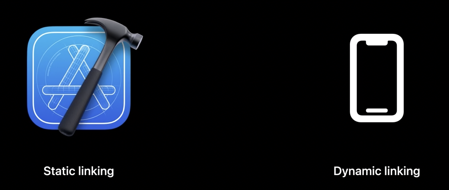 - Static Linking : 앱을 빌드할 때 발생, 빌드시간과 앱의 최종 크기에 영향을 줍니다.