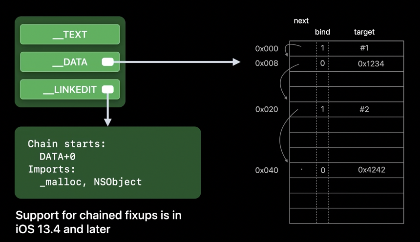 이러한 chained fix ups 방식은 iOS 13.4 이상부터 지원됩니다.